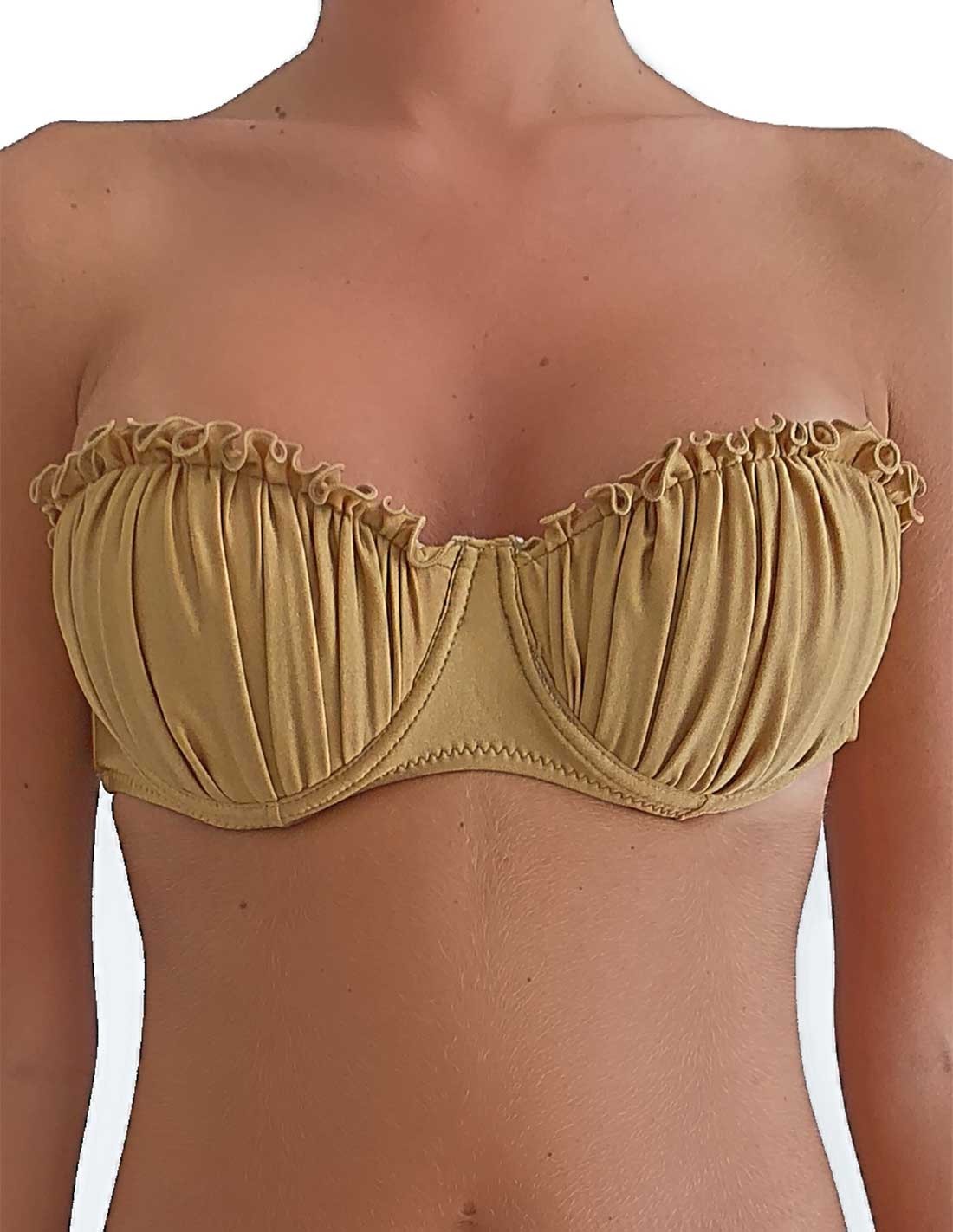 La fascia push up Greta può essere liberamente abbinata ai modelli di slip o brasiliana di Bazer, dello stesso colore della fascia, o di altri colori, per realizzare un completo bikini.